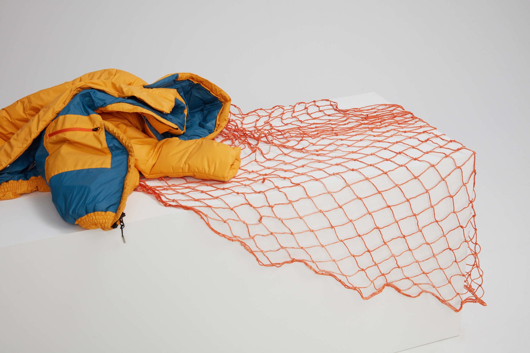 The exterior fabric of our puffy jacket is made of innovative textiles from fishing nets abandoned in oceans. These abandoned fishing nets are first transformed in threads and then weaved to create a new fabric that is durable and eco-responsible.